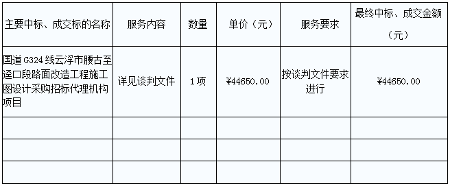 G324線云浮市腰古至逕口段路面改造工程施工圖設(shè)計采購招標(biāo)代理機(jī)構(gòu)項目的中標(biāo)、成交公告